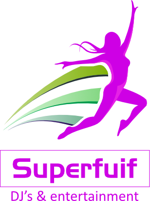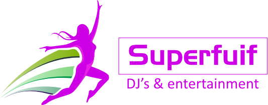 Superfuif logo - witte achtergrond, tekst rechts. JPG format.